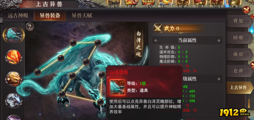 2.系统入口:背包-上古异兽