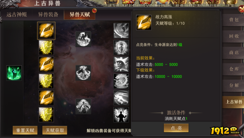 (3).天赋点获取:每收集一件异兽装备可获得天赋点*1